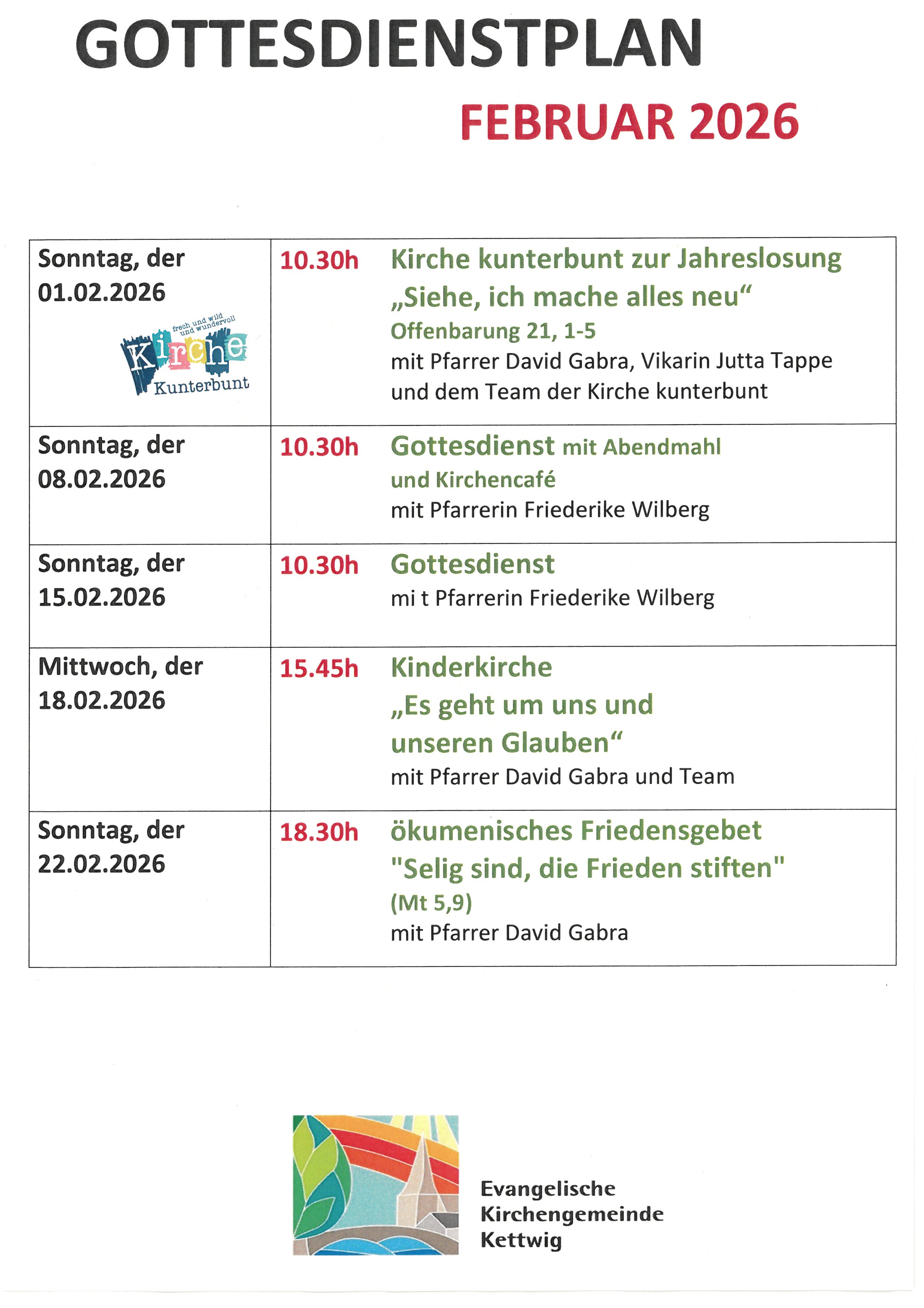 Bitte senden Sie uns ausserhalb dieser Zeit eine E-Mail oder kontaktieren Sie das Pfarrteam oder den Kirchenkreis.